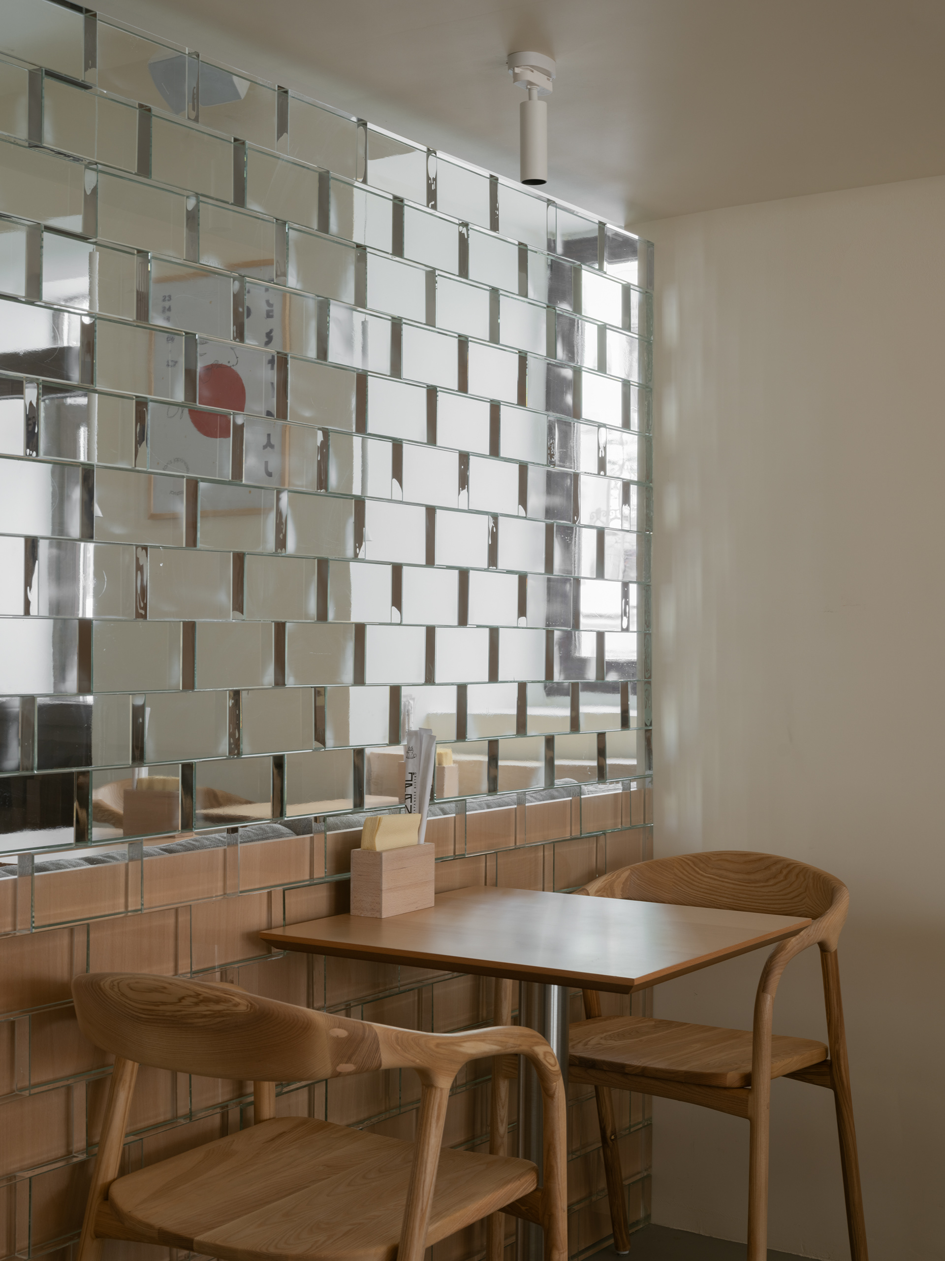 Ещё один инструмент зонирования - стеклянные кирпичи. С одной стороны они прозрачны и воздушны, с другой - преломляют свет и искажают образы в зависимости от угла обзора. Этот приём отсылает к проекту Optical Glass House японского архитектора Хироси Накамуры, став своеобразным мостом между традиционной архитектурой и современными дизайнерскими решениями.
