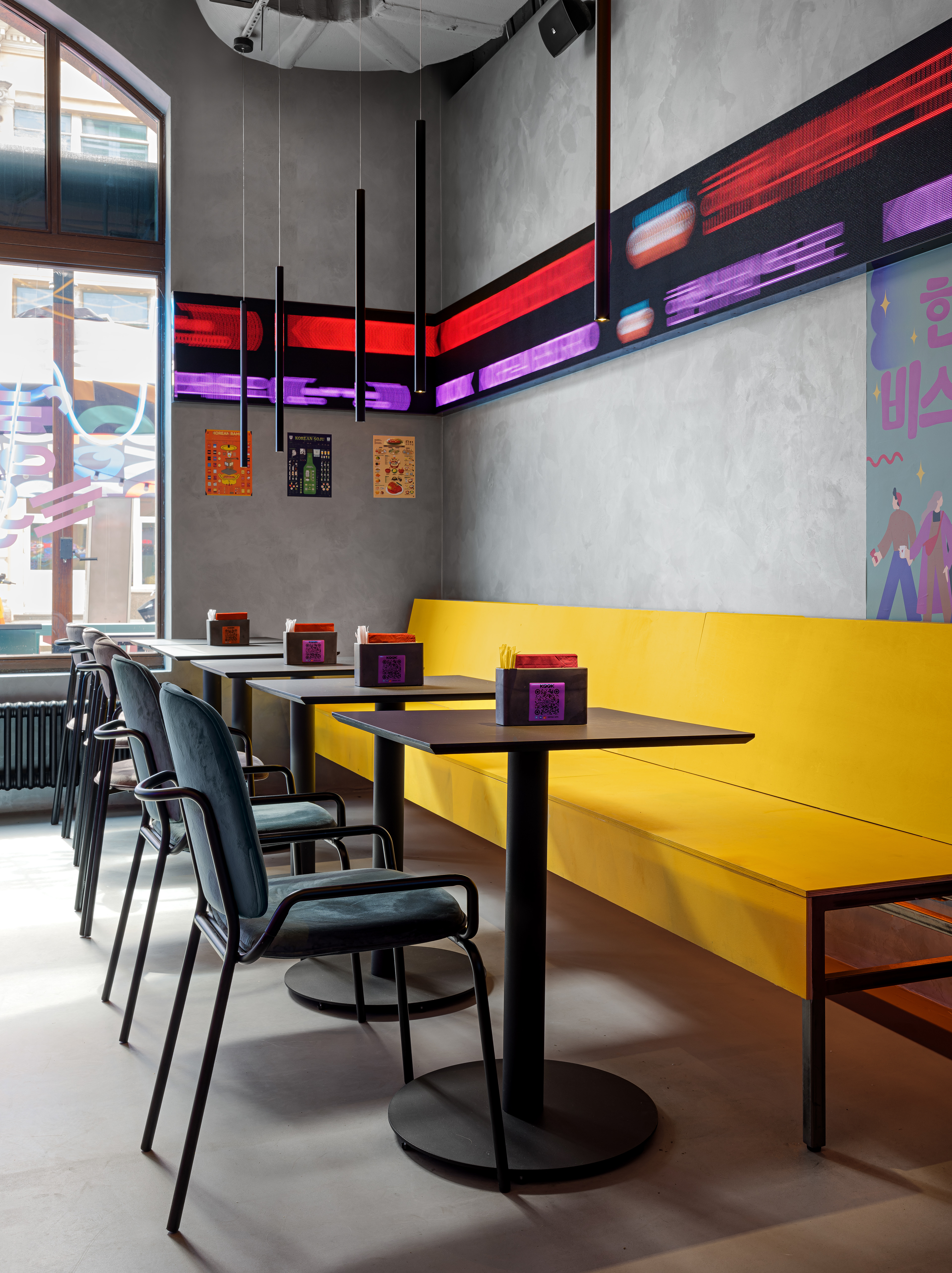 Концепция вдохновлена образами корейских концепт-сторов, где шоппинг - это настоящий визуальный опыт. Мы создали аналогичную атмосферу только для дайнинга, где мебель и арт-объекты стирают границы между искусством и дизайном. Место, в которое хочется прийти не только ради ужина, но и чтобы побыть в уникальном пространстве, наполненным большим количеством “селфи-поинтов”.